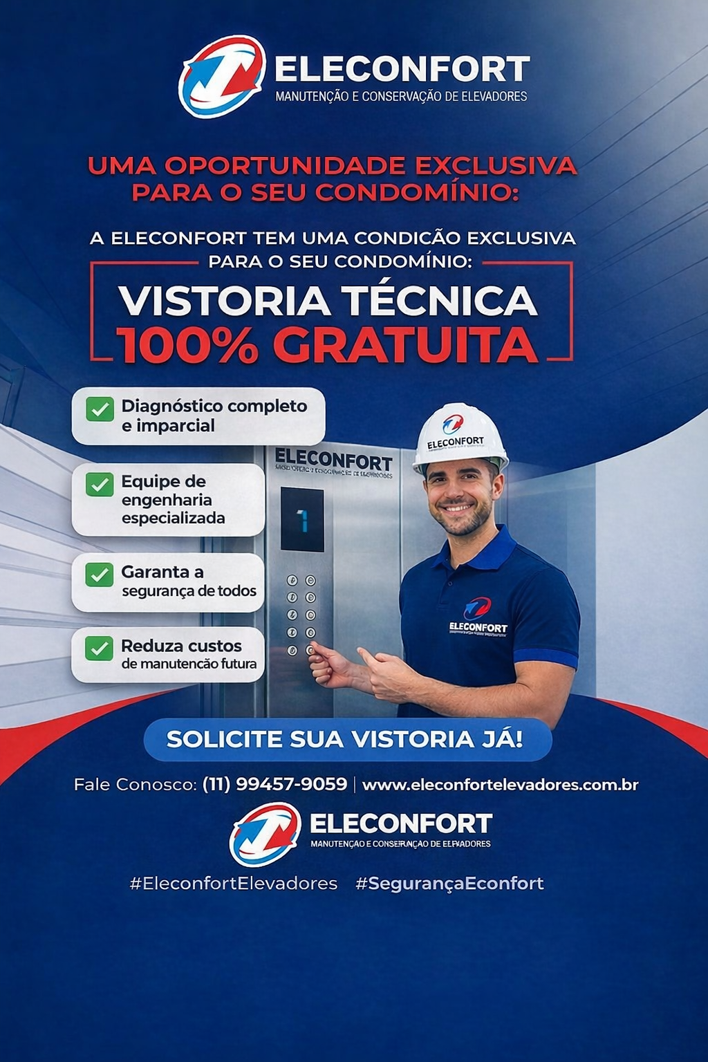 Evite paradas inesperadas e gastos abusivos. Conheça o modelo Eleconfort de manutenção preventiva , focado na transparência , economia e na valorização do seu patrimônio.